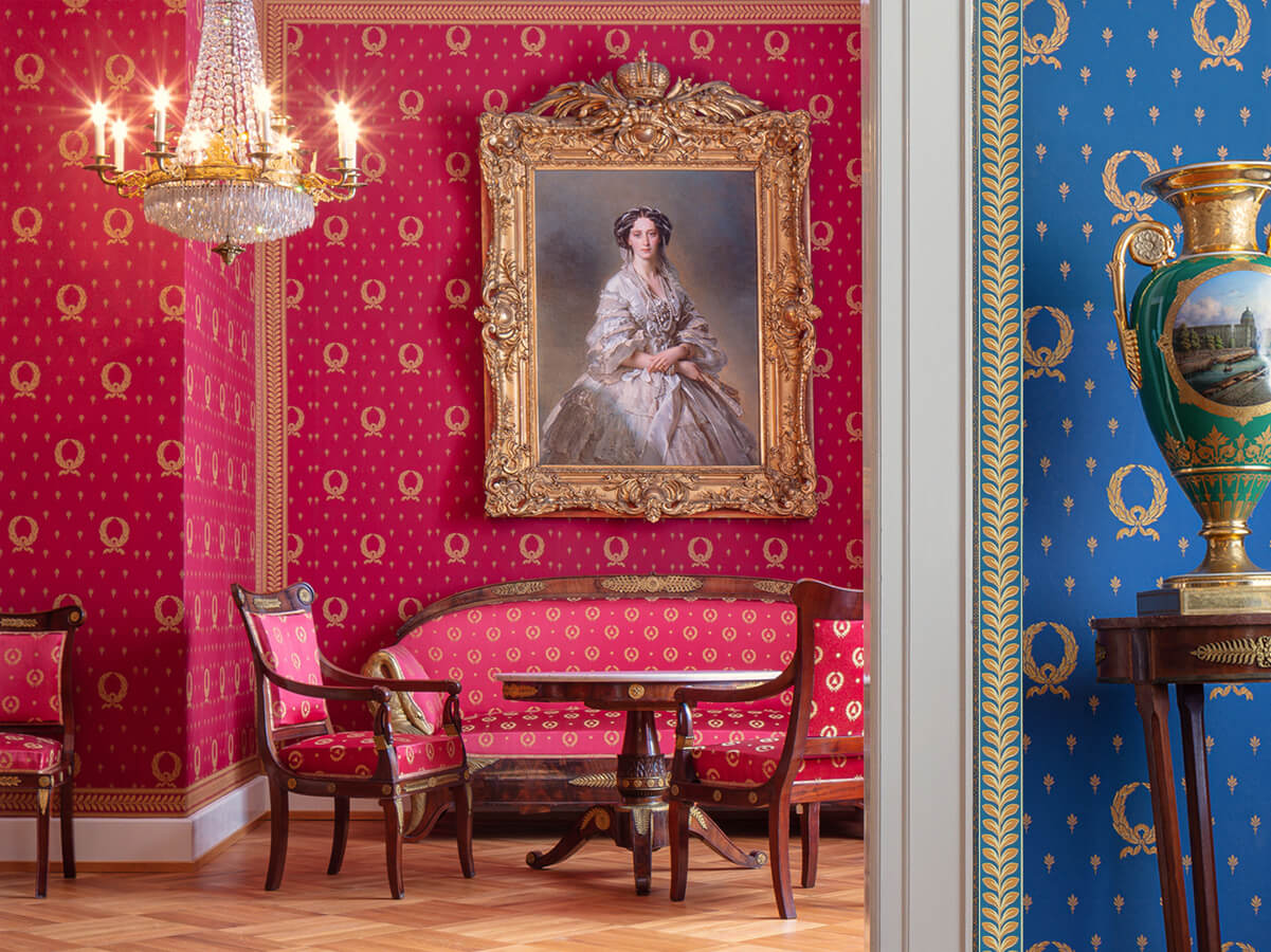 „Die Schönheit war immer in meinem Sinn“ Großherzog Ernst Ludwig von Hessen und bei Rhein (1868–1937) 1924 | Damengang1924 | Roter Salon1924 | Schlafzimmer des Großherzogs1944 | ZerstörungNach 1945 | Wiederaufbau1965 | Wiedereröffnung2024 | Roter Salon2024 | Foyer2024 | Ordensgang IMPRESSUM DATENSCHUTZ GROSSHERZOGLICHE PORZELLANSAMMLUNG FREUNDE DES SCHLOSSMUSEUMS